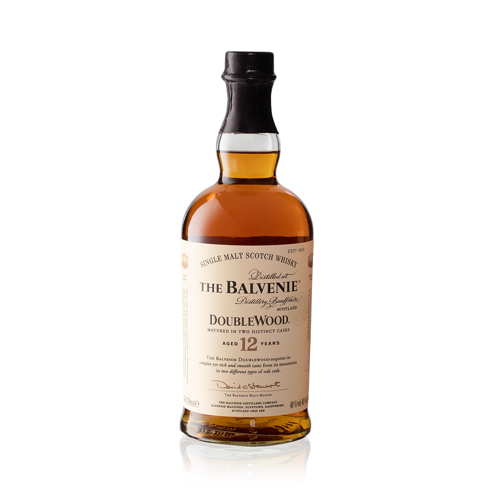 Balvenie destilleriet i Dufftown i den skotske Speyside-region har med deres DoubleWood-serie først lagret whiskyen i eks-bourbonfade, og så senere fulgt op med en efterlagring på”first fill”-sherryfade. DoubleWood har serien tro tilbragt mindst 12 år tilsammen på fad, hvoraf størstedelen af denne tid tilbringes i traditionelle eks-bourbonfade. Det endelige produkt er en single malt, som illustrerer kvaliteterne fra begge fadtyper med bourbonindflydelsen, der giver noter af kraftig vanilje, og sherryindflydelsen, som giver et væld af komplekse noter af tørrede frugter og sødmefuld honning. En lækker whisky som kan nydes af både begyndere og garvede kendere.