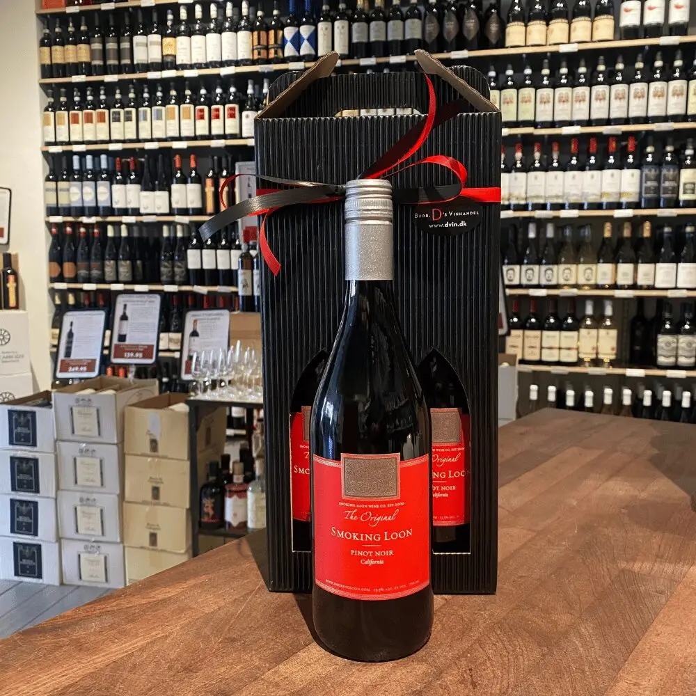 Gaveæske med 2 flasker saftig amerikanske Pinot Noir fra Smoking Loon.