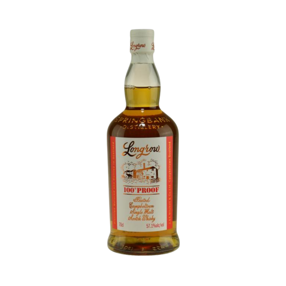 Longrow bliver lavet hos Springbank Distillery i Campbeltown og er opkaldt efter et forsvundet nabodestilleri. Stilen er mere kraftfuldt tørverøget og dobbelt-destilleret, og i 100 Proof-udgaven får røgen modspil af lagring på bl.a. bourbonfade og rødvinsfade, som bidrager med de røde bærnuancer i udtrykket. Den tappes uden kølefiltrering og uden tilsat farve, så strukturen og den naturlige farvetone får lov at stå helt uforstyrret.